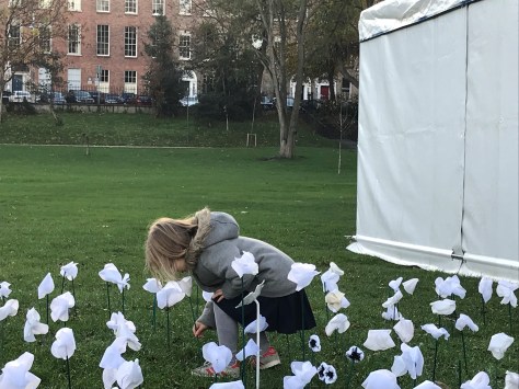More than 200 members of the public joined Dublin Quakers making white poppies and creating an art installation in Merrion Square, Dublin, on 11 November 2018.