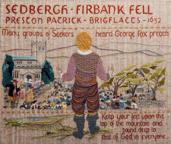 This is one panel of the Quaker Tapestry.